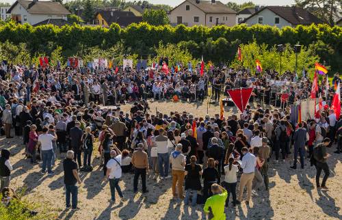 Commemoration at the former roll call site Gusen and eachnamematters in front of the tunnel system "Bergkristall"